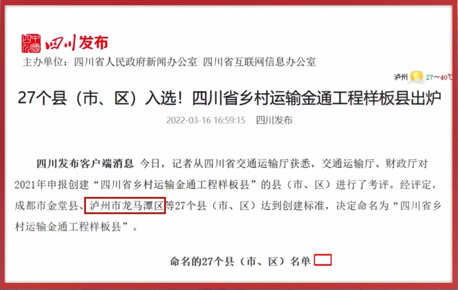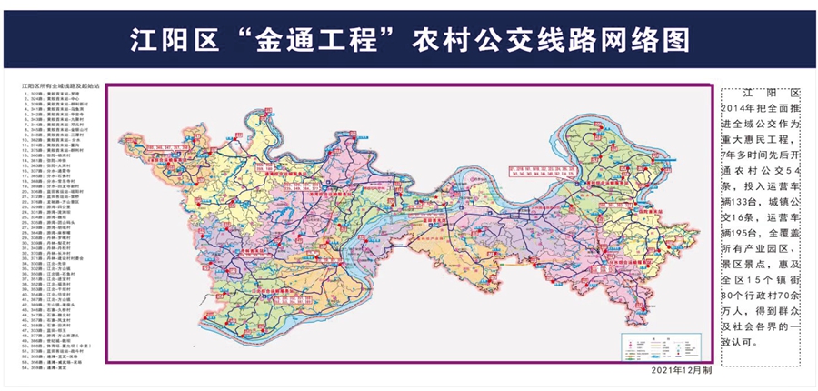 助力龍馬潭區(qū)以公交為紐帶實現(xiàn)了半小時經(jīng)濟圈,在江陽區(qū)實現(xiàn)全域公交村村通。江陽區(qū)54條農(nóng)村公交線路惠及群眾50萬人。在目前的公交線路中,全域公交、農(nóng)村公交線路占比達34%,江陽區(qū)“金通工程”全域公交先后2次在全省作經(jīng)驗交流,并獲得“四川省鄉(xiāng)村運輸金通工程樣板縣”殊榮。